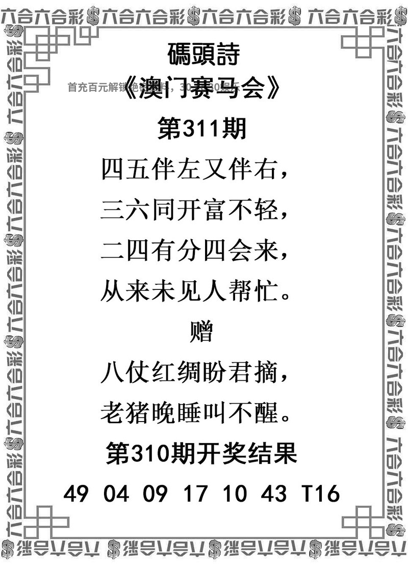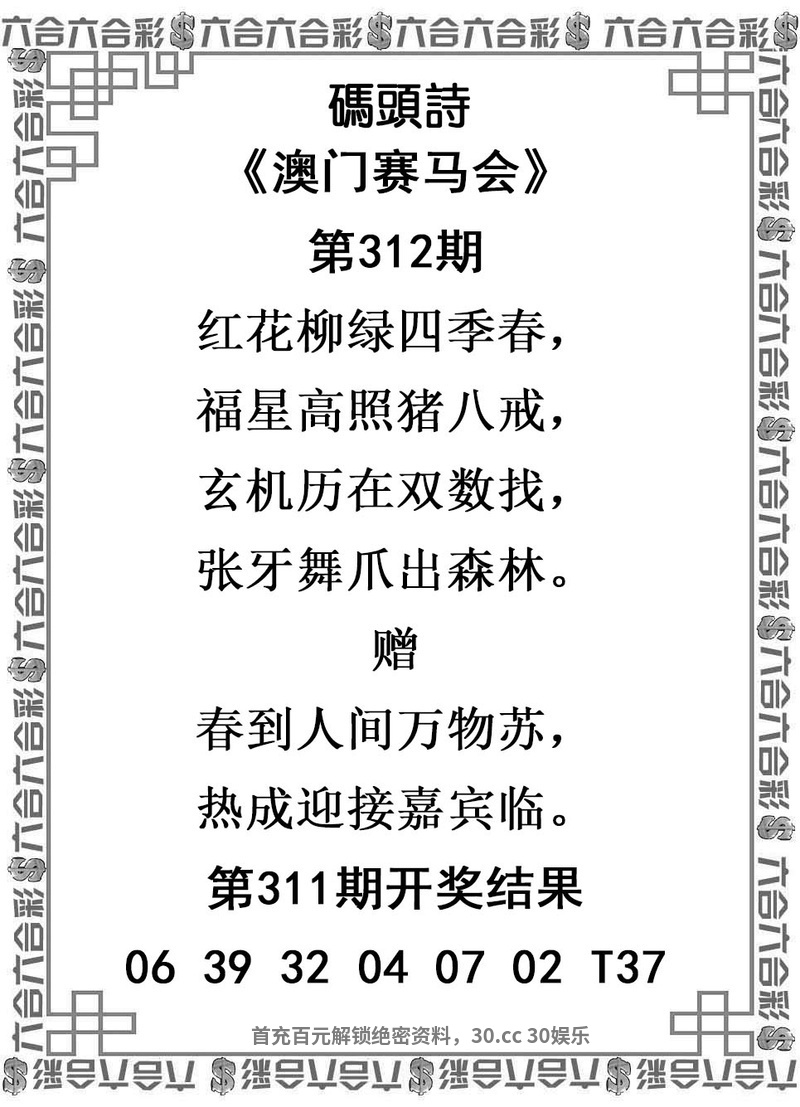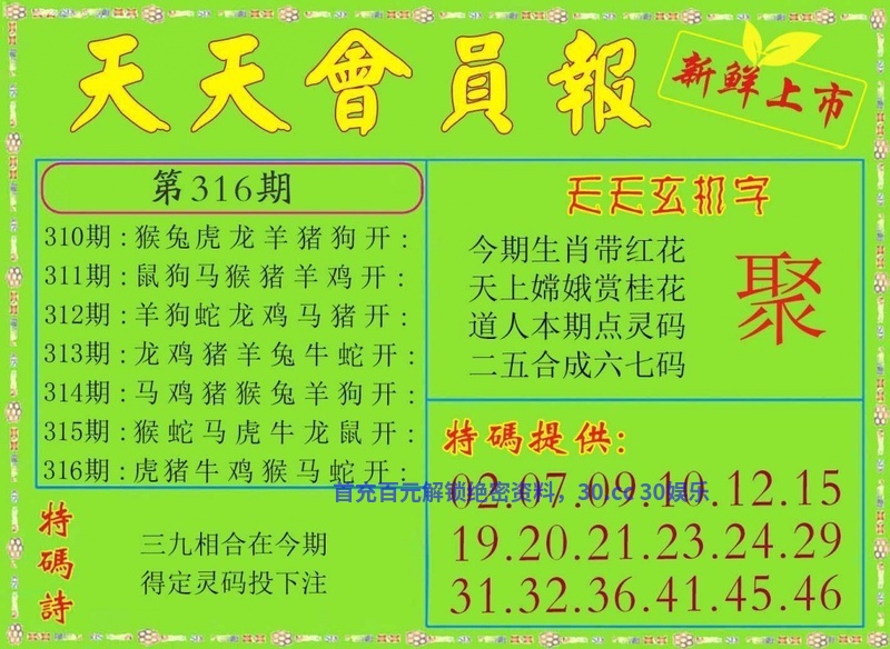 | 316期⑩码 | 30.06.19.21.15.24.46.41.32.04 | 發00中 |