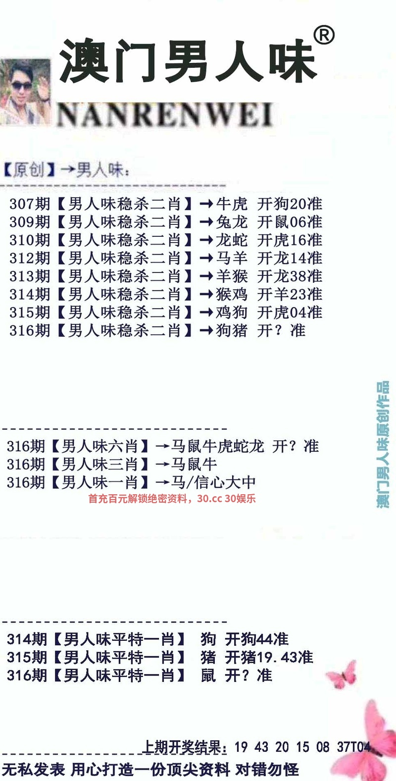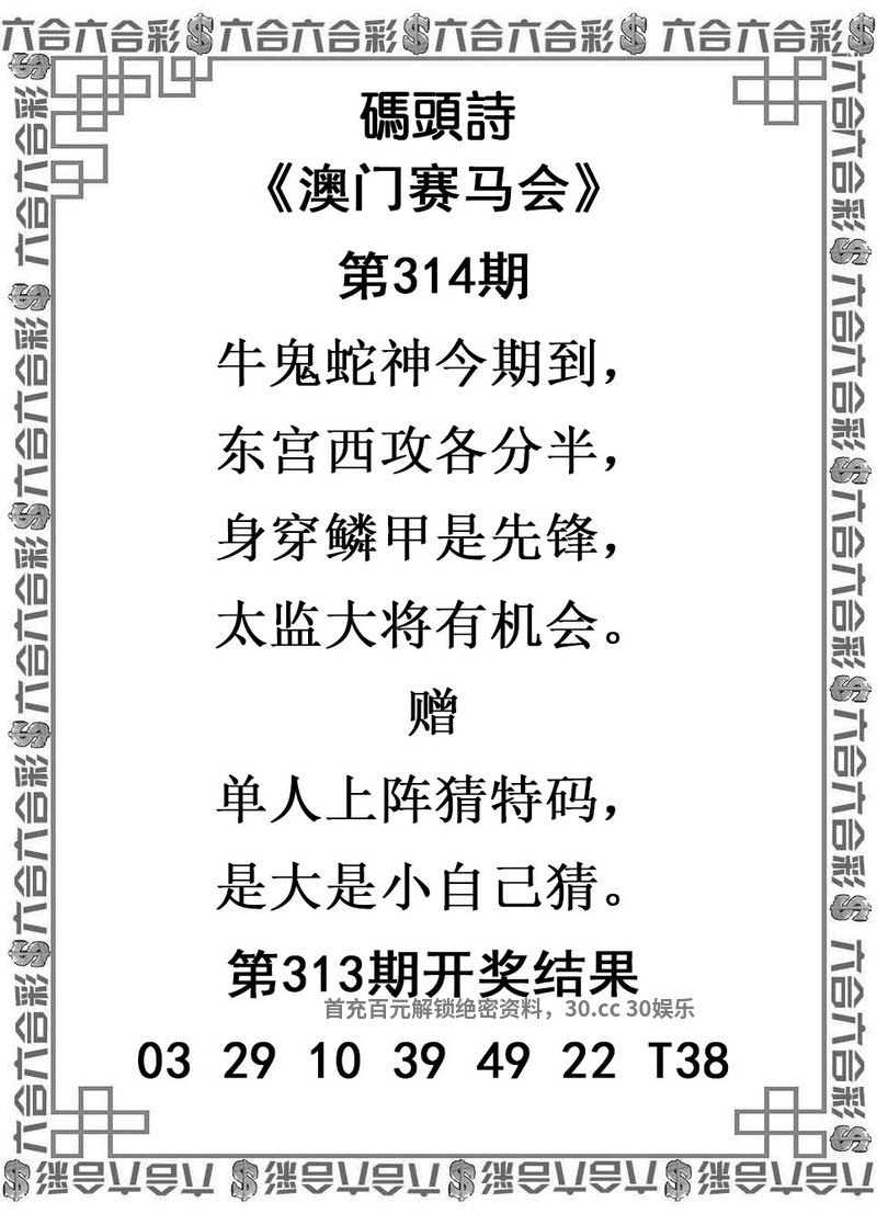 | 316期①码 | 30 | 發00中 |